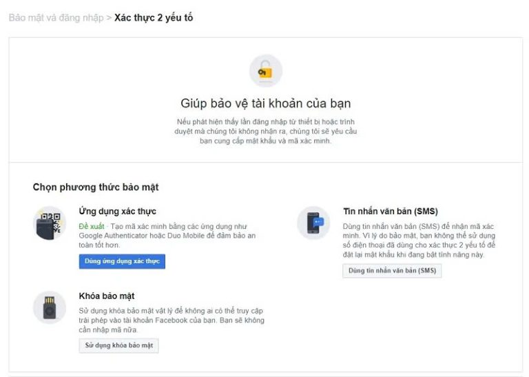 - Chọn phương thức xác thực (SMS, ứng dụng, v.v.)