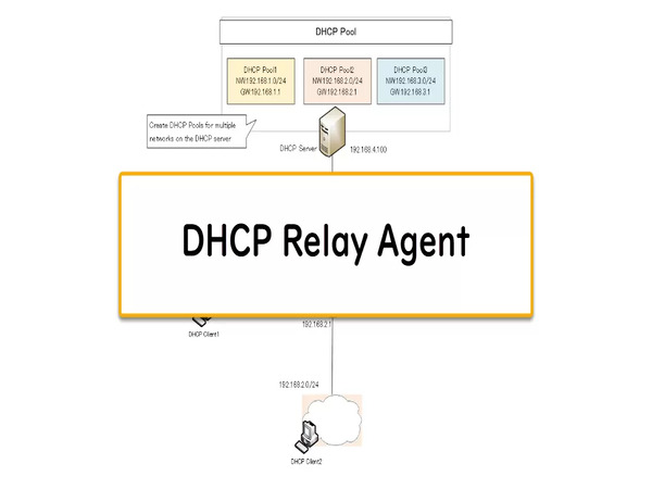 DHCP Relay Agents là các thiết bị hoặc dịch vụ dùng để chuyển tiếp các thông điệp DHCP giữa các máy chủ DHCP và các thiết bị client trên các mạng khác nhau. DHCP Relay Agents cần thiết khi máy chủ DHCP không nằm trên cùng một mạng vật lý với các DHCP client. Relay agent nhận yêu cầu từ DHCP client và chuyển tiếp nó đến máy chủ DHCP, sau đó gửi phản hồi từ máy chủ lại cho client. Điều này cho phép các mạng lớn với nhiều phân đoạn có thể sử dụng một máy chủ DHCP duy nhất để quản lý toàn bộ hệ thống.