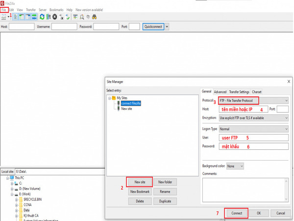 - Mở FileZilla Client: Tải và cài đặt FileZilla Client từ trang web chính thức (https://filezilla-project.org/).