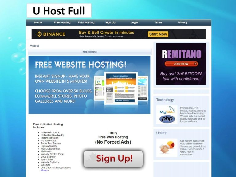 Uhostfull.com là một trong những dịch vụ hosting miễn phí (hosting free) đáng chú ý với các tính năng hấp dẫn: