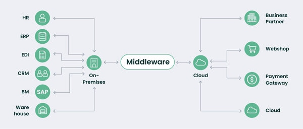 Như đã đề cập, middleware hoạt động như cầu nối giữa các ứng dụng, cho phép chúng giao tiếp và chia sẻ dữ liệu. Điều này không chỉ giúp đơn giản hóa việc tích hợp các ứng dụng cũ và mới vào một hệ thống thống nhất mà còn tạo ra khả năng tương tác mạnh mẽ giữa các thành phần khác nhau.