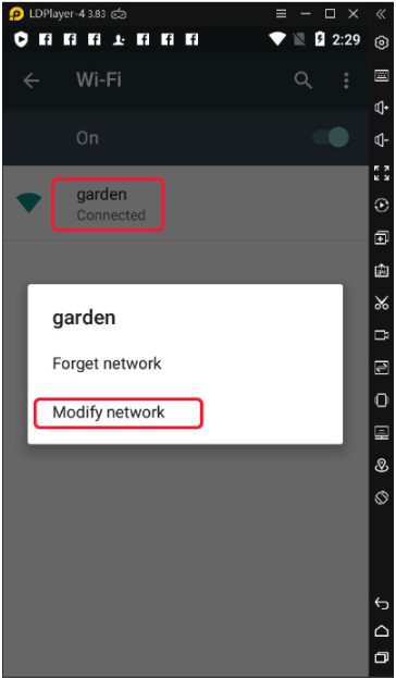 Bước 2: Cấu hình Settings: Tại giao diện “Wireless và Networks,” bạn chọn mục Wi-Fi, sau đó nhấn và giữ vào tên mạng Wi-Fi của bạn trong khoảng 4 đến 5 giây. Một menu mới sẽ xuất hiện, bạn chọn “Modify network” để tiếp tục.