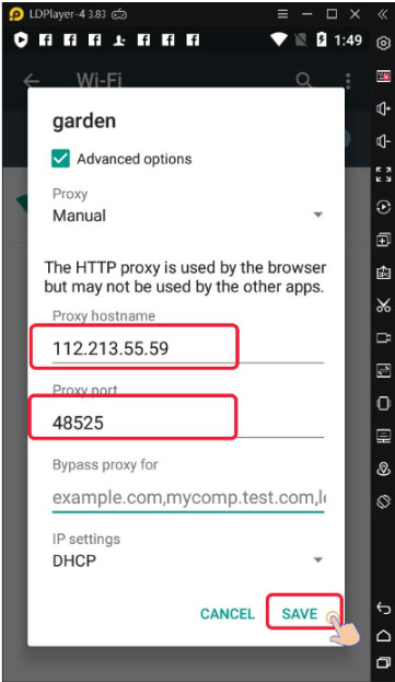 Bước 3: Lưu cấu hình: Cuối cùng, chọn một địa chỉ IP bất kỳ mà bạn muốn sử dụng và nhấn “Save” để lưu lại cấu hình Proxy 4G. Vậy là bạn đã hoàn tất quá trình cài đặt!
