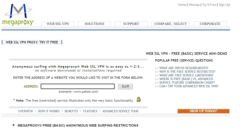 Megaproxy là một dịch vụ proxy miễn phí cao cấp, hỗ trợ JavaScript, Web SSL, HTTPS và FTP.