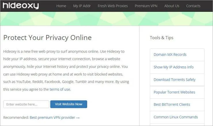 Hideoxy cung cấp khả năng ẩn địa chỉ IP cho cả thiết bị di động và máy tính để bàn, cho phép người dùng truy cập và duyệt nội dung web một cách ẩn danh, từ đó bảo vệ thông tin cá nhân. Dịch vụ này cũng cho phép người dùng truy cập vào các trang web bị hạn chế.