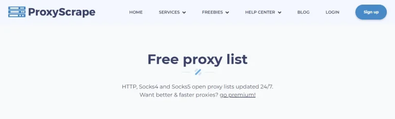 Proxy Scraper là một trang web Proxy miễn phí, mang đến trải nghiệm truy cập mạng an toàn và đáng tin cậy dưới chế độ ẩn danh. Dịch vụ cung cấp danh sách đầy đủ các Proxy miễn phí để người dùng dễ dàng lựa chọn.
