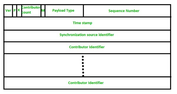 - Contributor Identifier: Cuối cùng, trường 32 bit này dùng để nhận dạng nguồn khi có nhiều hơn một nguồn trong phiên. Mixer source sử dụng một bộ Synchronization Source Identifier và các nguồn còn lại (tối đa 15) sẽ dùng Contributor Identifier để phân biệt.