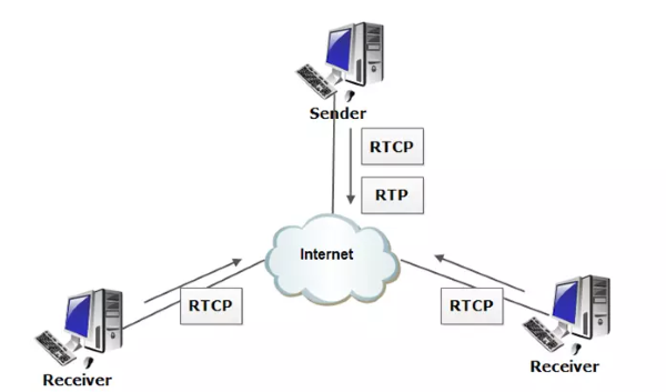 RTCP (RTP Control Protocol) kết hợp với RTP để cung cấp thông tin phản hồi cho người dùng về chất lượng luồng phương tiện. RTCP là giao thức được sử dụng phổ biến trên máy khách để phản hồi về chất lượng dịch vụ như độ trễ, mất gói, hoặc thời gian tròn RTT. Dựa trên các phản hồi này, máy chủ có thể điều chỉnh codec hoặc chất lượng luồng. Nếu RTP không xác định được codec hoặc không xử lý được luồng dữ liệu, nó có thể sử dụng các giao thức như SIP, H.323 hoặc XMPP.